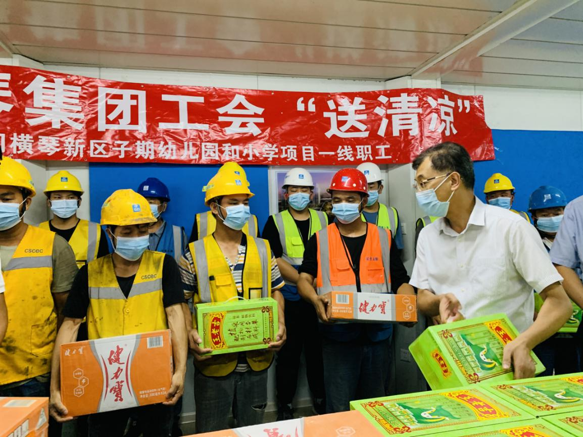 为进一步加强高温作业职工劳动保护工作,关爱坚守在项目一线的建设者,2021年7月,大横琴集团党委书记、工会主席田伟带队分别赴科学城(二期)标段一、标段二项目、横琴医院项目、横琴新区子期幼儿园和小学及保税一小工程项目开展夏日送清凉慰问活动。