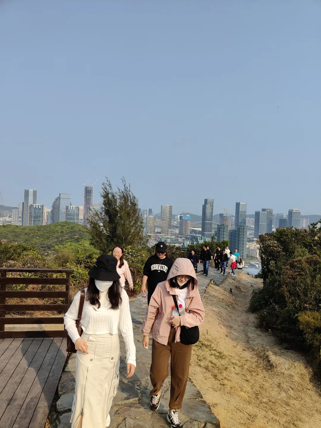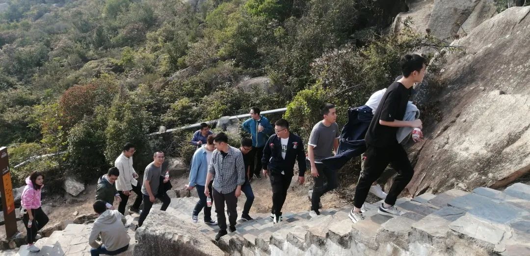 登山过程中,大家三五成群沿着依山体而建的石梯拾级而上,在领略横琴的秀丽山河和横琴的建设之美,进一步增进了各部门同事之间的沟通和交流。期间,运维管理中心的同事在登山的同时也不忘工作,对公司在小横琴山上建设的通信光缆和信息化设备设施资源进行了识别和排查梳理,为下一步提升公司的运维服务能力和应急保障水平夯实了基础。