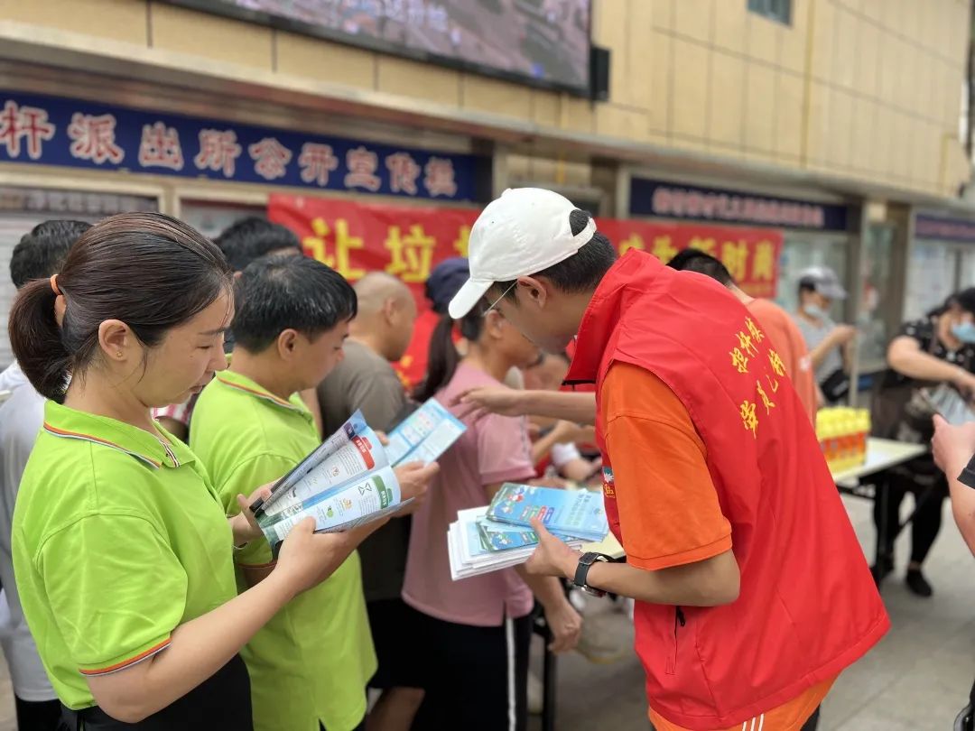 党员志愿者为居民发放垃圾分类宣传册,耐心讲解垃圾分类知识