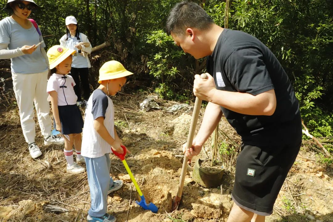 亲子家庭领取黄花风铃木树苗,栽种在指定位置
