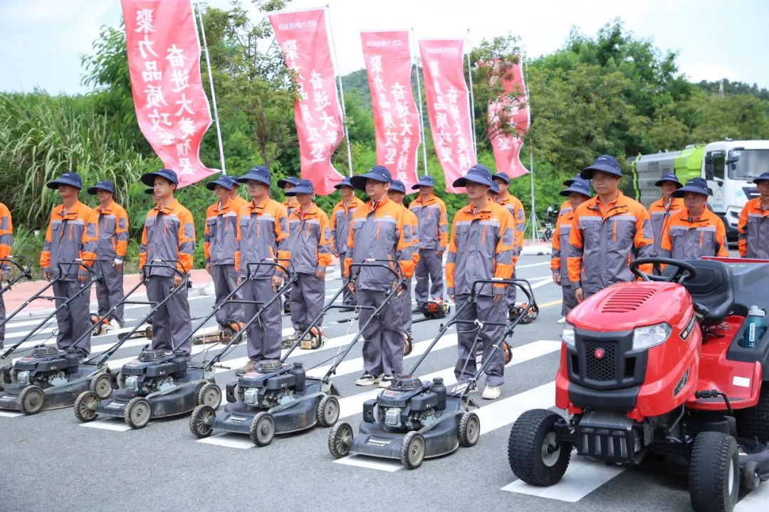 战旗飘扬,誓言铮铮,180余名城市服务工作者在横琴粤澳深度合作区爱琴路集结会师,35种100余台机械化装备轮番上阵显身手,一场斗志昂扬的誓师大会擂响下半年冲刺战鼓。