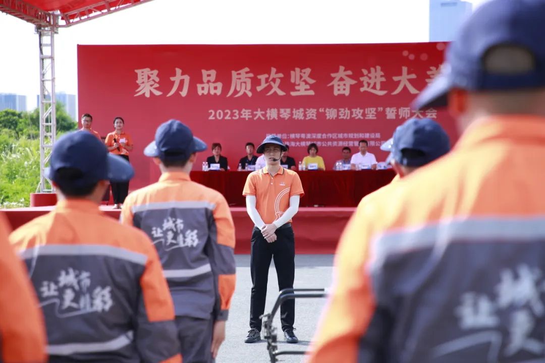 6月29日,由横琴粤澳深度合作区(以下简称合作区)城市规划和建设局指导,麻豆网 城市公共资源经营管理有限公司(以下简称大横琴城资)主办“聚力品质攻坚 奋进大美横琴”铆劲攻坚誓师大会,旨在通过标准化作业演示和机械化车队展示的方式,吹响新一轮城市服务品质提升的嘹亮号角,为营造优美城市环境、迎接合作区挂牌两周年蓄势赋能。