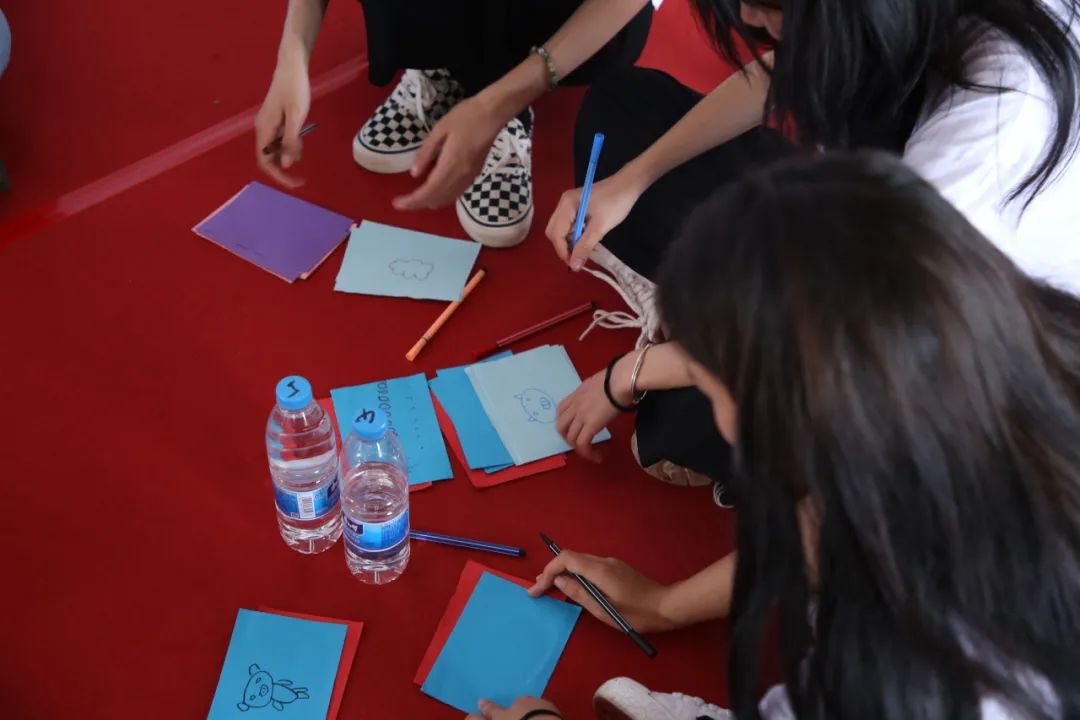 拓展教官给实习生们分别派发三种不同颜色的纸,让实习生们在纸上对应画出自己过去、现在和未来心中的模样。然后鼓励大家分别向不同的伙伴介绍图案及背后的故事。通过这个环节,让大家更好理解自己和他人故事,加深相互了解。