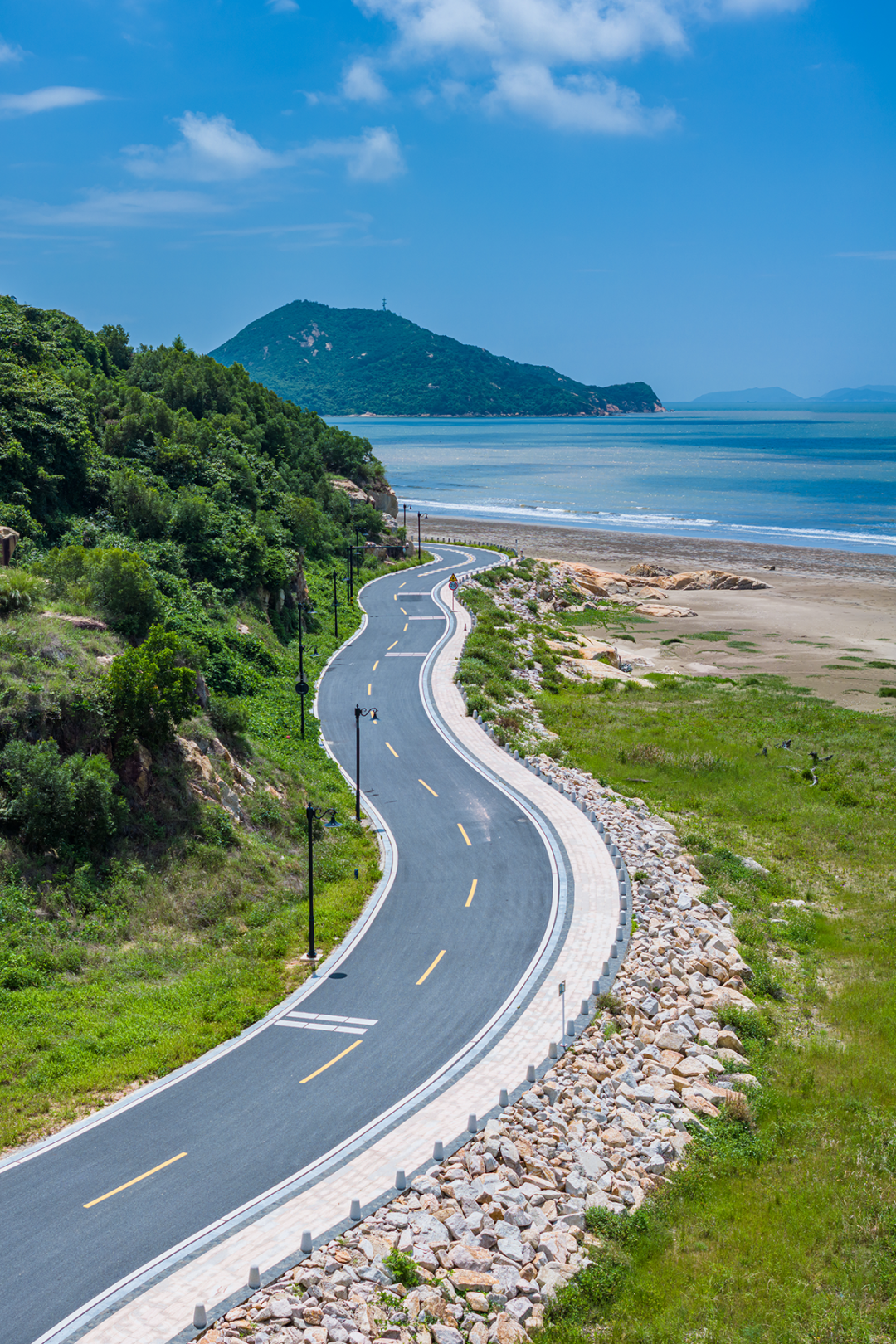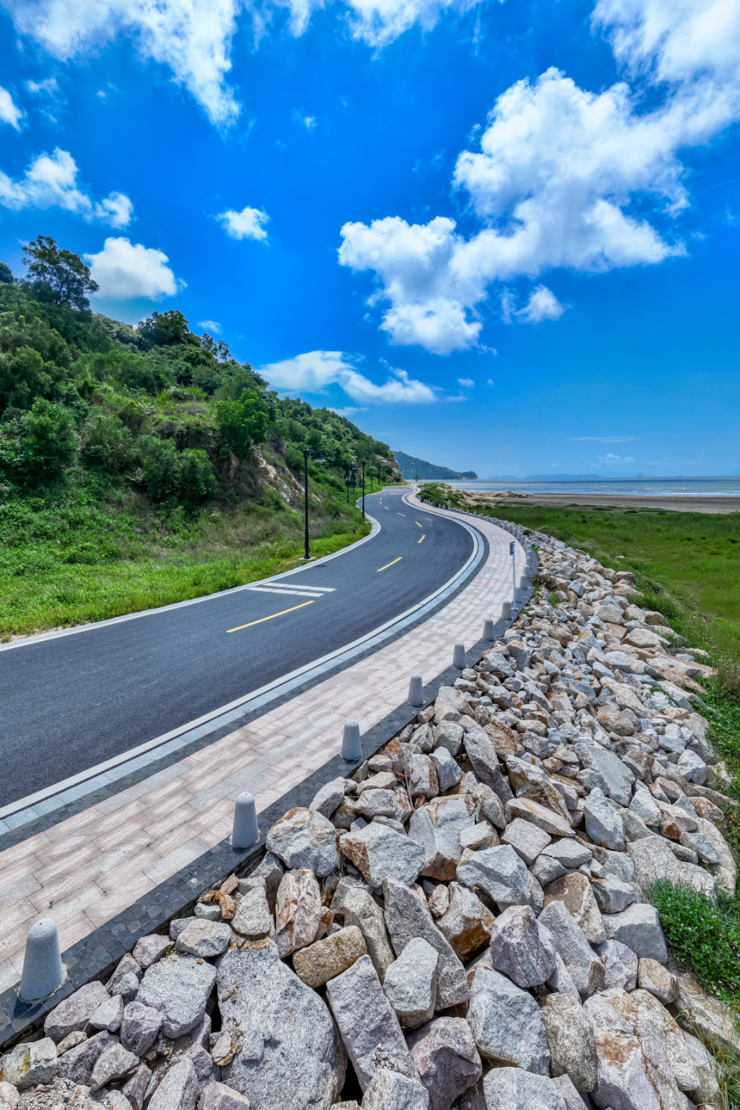 行走在蜿蜒的临海大道,一边是秀丽的山丘,一边是深邃的大海,沐浴着阳光,聆听着海浪,映入眼帘的是蓝天、大海以及四季花开不断的画面。