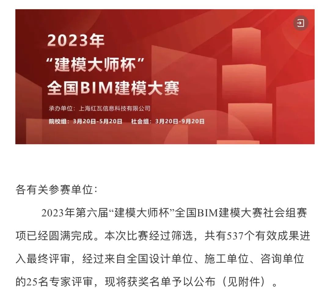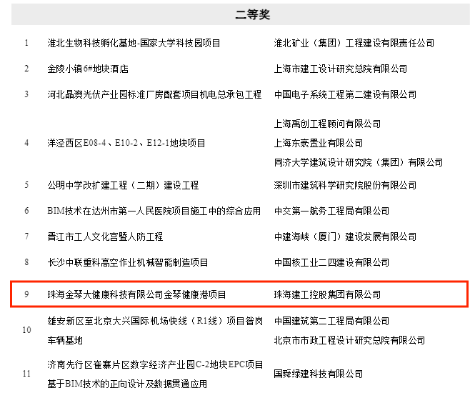 近日,珠海建工集团参赛作品《金琴健康港项目BIM应用汇报》荣获2023年“建模大师杯”全国BIM建模大赛社会组二等奖,此次获奖的作品展现了公司在数字化施工及BIM技术应用方面的突出表现,是公司努力推动数字化转型的成果,也是对未来发展的有力鼓舞,接下来就让我们一起走近看看吧。