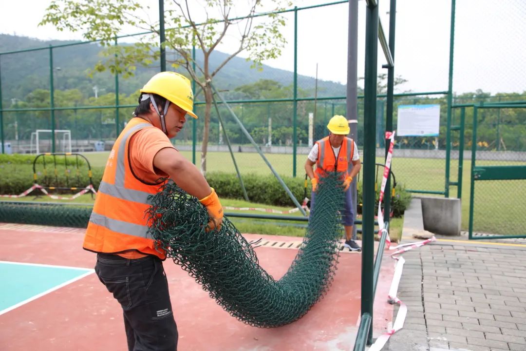 为尽快解决居民的“烦心事”,改善居民健身环境,接到居民反映后,在合作区城市规划和建设局指导下,大横琴城资立即组织专人仔细检查各细节角落,在分析研判后着力实施匹克球场整修“微改造”项目,将原有高度1.5米的围网拆除,新建高度4米的围网。