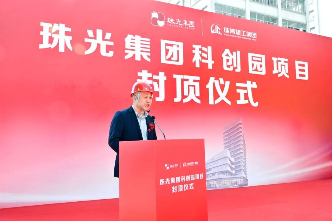 珠海建工集团党委书记、董事长黄如华,广东华工工程建设监理有限公司珠海分公司总经理莫涛涛,珠海市珠光集团控股有限公司党委副书记、总经理王轶分别发表致辞。他们表示,主体结构封顶是一个里程碑,也是一个加油站,更是迎接新挑战的全新开始。业主、施工、监理、设计、勘察等相关单位将再接再厉、通力合作,以坚如磐石的信心和高昂的斗志,全力以赴完成后续各项工作,为全面完成项目建设奠定基础,打造南屏科技工业园新地标。