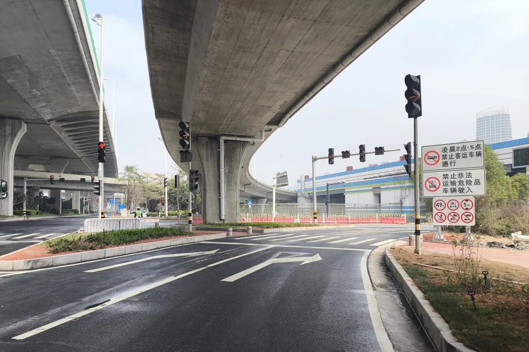 对深井通道“二线”通道内有局部破损、高差的道路进行维修,共计维修沥青路面990㎡,有效提高了该段道路行车的安全性和舒适性。此外,通过改造交通信号灯、拓宽车道、将绿化带改造为沥青路面等多种方式,进一步优化交通组织,保障道路交通秩序环境安全有序。