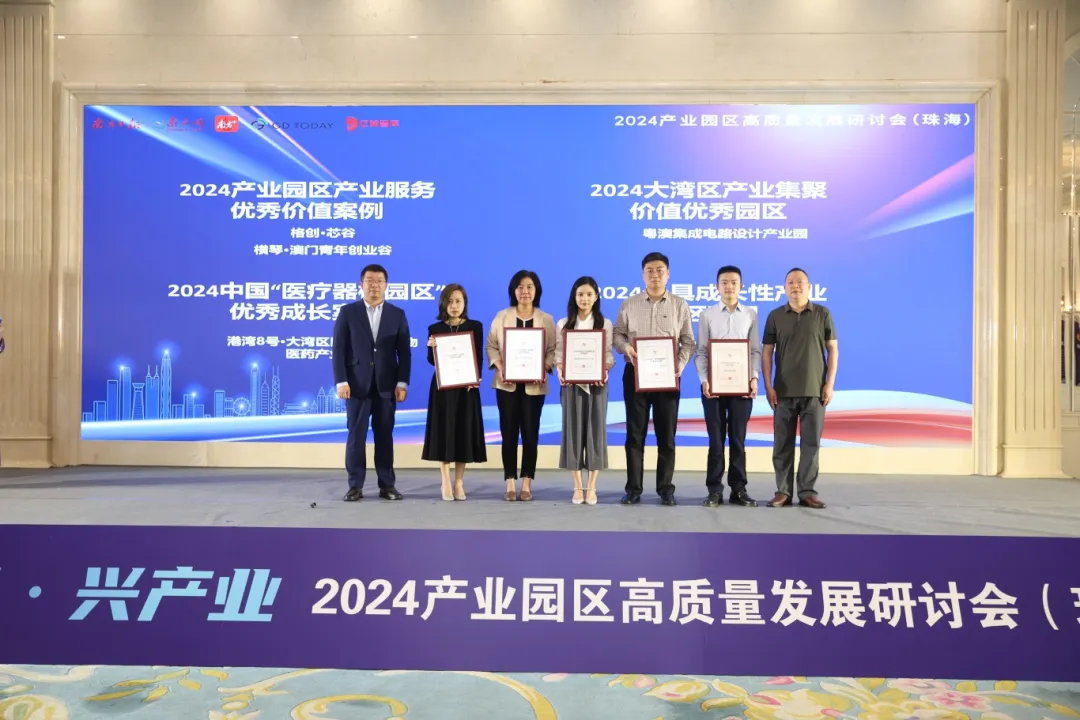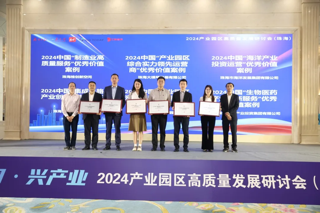 近日,由南方报业传媒集团指导,南方报业传媒集团珠海分社、亿翰智库联合主办的“新空间·兴产业——2024产业园区高质量发展研讨会(珠海)”在珠海度假村举行,本次活动集聚产业投资机构、资管机构、金融机构、产业园区开发运营企业、科技企业等各大企业。活动发布了《2024产业园区发展趋势展望及珠海产业园区高质量发展报告》研究成果。其中,大横琴发展公司荣获【2024中国‘产业园区综合实力领先运营商’优秀价值案例】,横琴·澳门青年创业谷荣获【2024产业园区产业服务优秀价值案例】,横琴国际科技创新中心荣获【2024城市封面价值产业园区(未来引领类)】,勇夺三项行业大奖,再获行业、市场及权威机构的认可。
