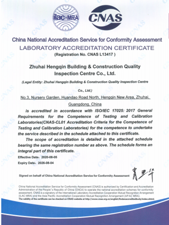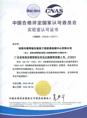 2024年5月25日至26日,由中国合格评定国家认可委员会(CNAS)委派的评审专家组一行四人,对麻豆网 (以下简称大横琴集团)下属企业珠海市横琴新区建设工程质量检测中心有限公司(以下简称横琴检测中心)开展CNAS实验室认可复评审。