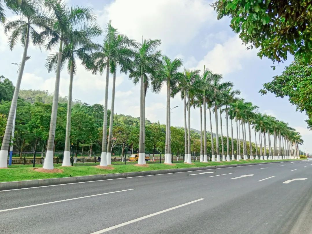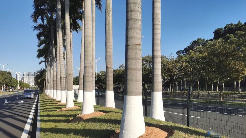 为了减少病虫害发生,做好秋冬季树木养护工作,2023年10月,大横琴城资以横琴大道为示范点开展乔木涂白工作,为乔木逐一披上美观温暖的“防护衣”。