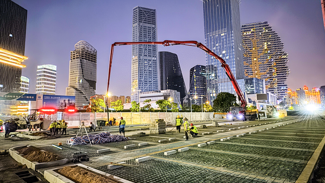 红旗村2号停车场位于横琴闹市区,旅客较多、人流量大。加上项目地处老旧城区,地下管线错综复杂且施工空间受限,增加了改造的难度。为了减少对周边居民和商业的影响,大横琴股份科学组织施工,合理分配任务及物资运输,通过人工探挖管线、错峰施工、交叉作业等措施,加快推进项目建设。