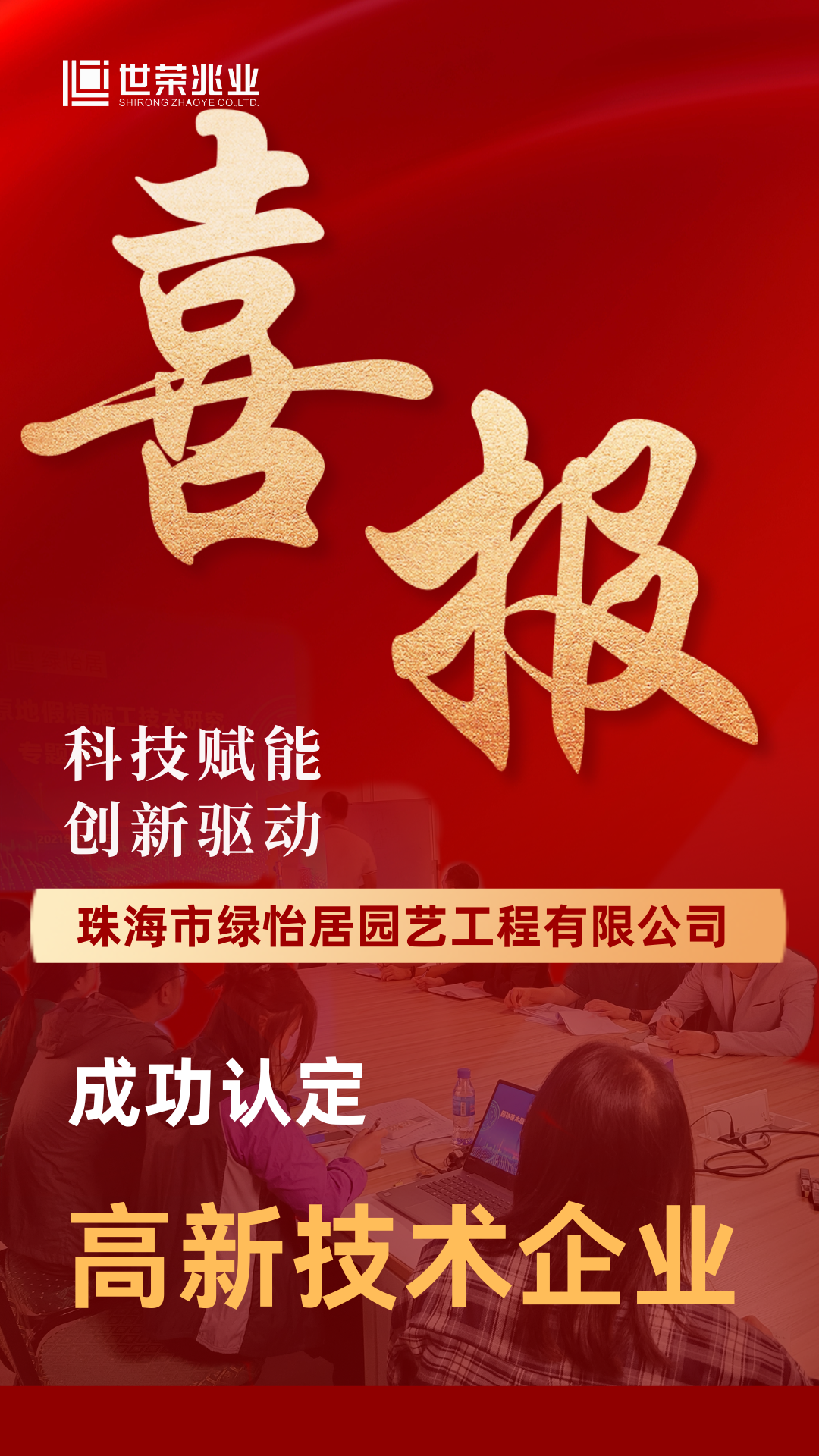 近日,大横琴集团上市平台广东世荣兆业股份有限公司旗下珠海市绿怡居园艺工程有限公司成功通过高新技术企业认定。这一认证既是世荣兆业在大横琴集团赋能下深化科技转型的阶段性成果,更是对绿怡居多年坚持技术研发的权威认可。
