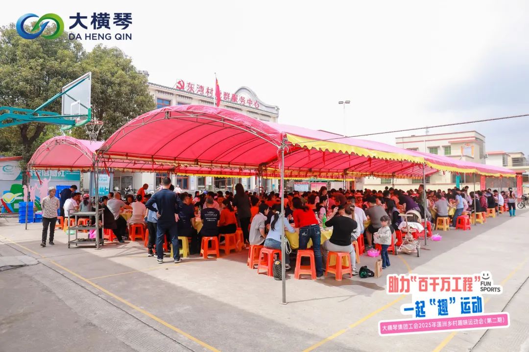 以趣味运动会形式,持续推动乡村振兴,助力“百千万工程”高质量发展,是大横琴集团助力斗门区莲洲镇东湾村组团式帮扶的重要举措,也是大横琴集团工会落实“企业职工健康促进工程”常态化建设、丰富职工文化生活的有力抓手。