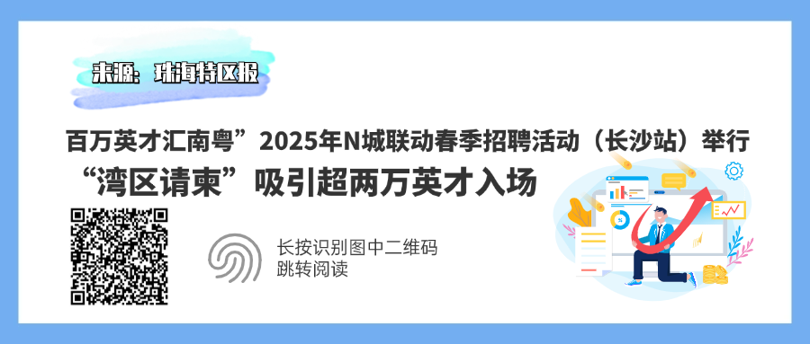 4月26日,由教育部和广东省委、省政府主办,珠海市和横琴粤澳深度合作区联合承办的“百万英才汇南粤”2025年N城联动春季招聘活动(长沙站)在长沙北辰国际会议中心举行。本次活动以“粤聚英才 粤见未来”为主题,由珠光集团具体执行,超250家广东知名用人单位参展,吸引超2万名求职者参与,现场收取纸质简历3.1万份、线上投递简历1.1万份,超5000人达成就业意向。
